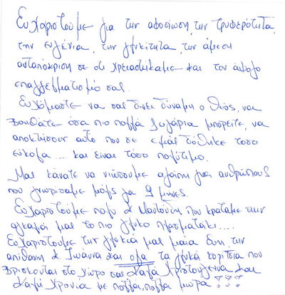 “Ευχαριστούμε για την αφοσίωση, την τρυφερότητα, την ευγένεια, τη γλυκύτητα, την άμεση ανταπόκριση σε ό,τι χρειαστήκαμε και τον άψογο επαγγελματισμό σας.