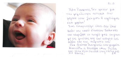 Ένα ιδιαίτερο ‘ευχαριστώ’ στους γιατρούς Μαντούδη και Κουντάρα, στη Ρούλα και στην Εύη. Θα είστε στην καρδιά μας για πάντα!
